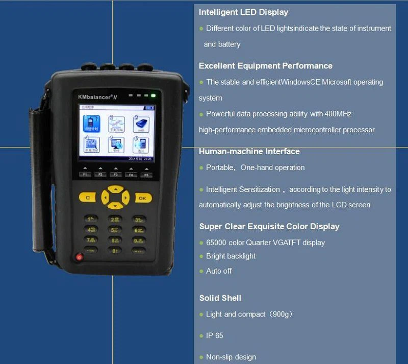 Compacto y duradero, gran pantalla gráfica a color, multilingüe y ergonómico KMbalancer Portable Balancer es el dispositivo de equilibrio portátil más simple y rápido del mercado.